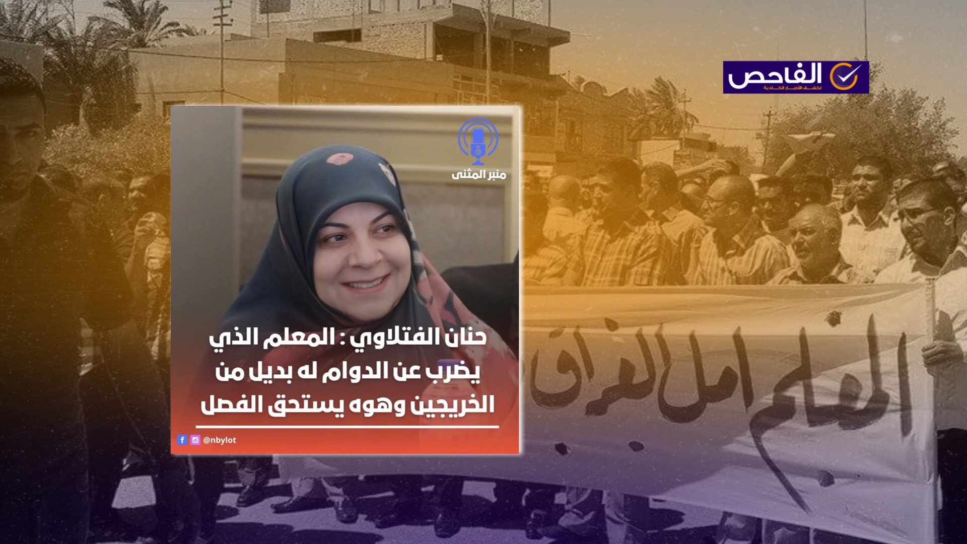 نَشرت صفحاتٌ على مواقع التواصل الاجتماعي فيسبوك وإكس، تصريحاً منسوباً للسياسية العراقية، ورئيس حركة إرادة حنان الفتلاوي، على إنَّها قالت (دون تصرّف): “المعلم الذي يضرب عن الدوام له بديل من الخريجين وهوه يستحق الفصل”. وحاز الادّعاء على عدد كبير من التفاعلات.