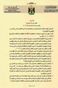 وقال المتحدث باسم وزارة التخطيط عبد الزهرة الهنداوي، عام 2022 لوكالة الأنباء العراقية (واع)، إنَّه “بموجب القرار الصادر من مجلس الوزراء برقم 281 لسنة 2017، يتم استقطاع نسبة 1% من راتب الموظف الحاصل على الرقم الوظيفي، ويتم للموظف الحاصل على الرقم الوظيفي ولمرة واحدة ومن راتبه الاسمي فقط وليس الكلي”.