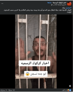 نَشرت صفحات على موقع التواصل الاجتماعي، وخصوصاً على منصّة فيسبوك، مقطع فيديو يظهر صانع المحتوى وصاحب مطعم السمك المعروف بـ”أبو جنّة”، بمزاعم (دون تصرّف): “#عــاجــل القوات الامنية تنفذ حملة اعتقال بحق المدعو أبو جنة ومينه مينه وعلي الخالدي و9 اخرين بسبب المحتوى الهابط”. كما تضمّن الفيديو نص مفاده: “أبو جنة انسجن”، وحصد عشرات آلاف التفاعلات والمشاركات.