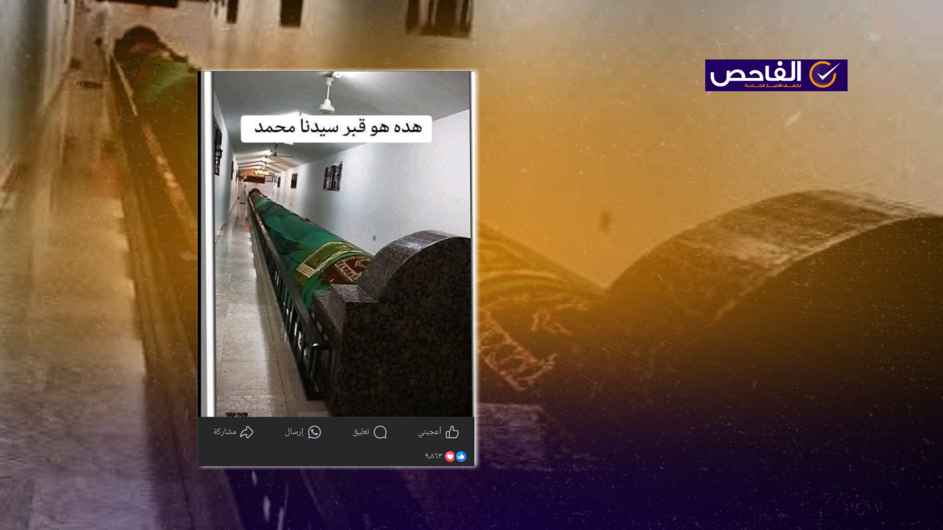 تداولت صفحاتٌ على مواقع التواصل الاجتماعي فيسبوك صورة بمزاعم أنَّها تظهر قبر رسول الله محمد، وحصد عشرات الآلاف من التفاعلات والتعليقات والمشاركات على فيسبوك.