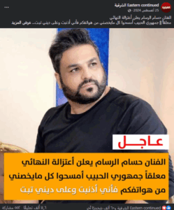 تتداول صفحات على مواقع التواصل الاجتماعي فيسبوك خبر يزعم (دون تصرّف): “الفنان حسام الرسام يعلن أعتزالة النهائي للغناء معلقاً: جمهوري الحبيب أمسحوا كل مايخصني من هواتفكم فأني أذنبت وعلى ديني تبت”. وحصد الادعاء أكثر من 15 ألف تفاعل، وتعليق ومشاركة.