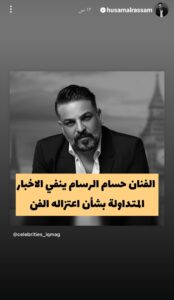 وأثناء البحث عن الادعاء، وجد الفريق قصة في حساب حسام الرسام على أنستغرام شاركها الرسام ونفى من خلالها اعتزاله الغناء، كما شارك إعلانات حفلاته القادمة في بريطانيا، والسويد وألمانيا، ما ينفي الادّعاء المتداول.