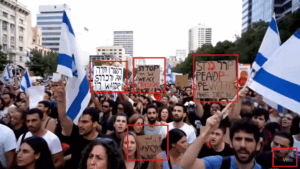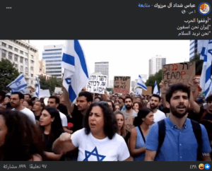 نَشرت صفحات على مواقع التواصل الاجتماعي، وخصوصاً على منصة فيسبوك، بالتزامن مع استمرار الصراع الإيراني-الإسرائيلي، والهجمات الحربية المتبادلة بين الطرفين، مقطع فيديو على أنه يظهر احتجاجات للمستوطنين الإسرائيليين داخل الأراضي الفلسطينية المحتلة، وهم يعتذرون من إيران ويطالبون بإنهاء الحرب، وأرفق الفيديو بنص مفاده (دون تصرّف): “أوقفوا الحرب ’إيران نحن اسفون‘ نحن نريد السلام”. وحصد الفيديو آلاف التفاعلات في منشورات كثيرة على منصة فيسبوك.