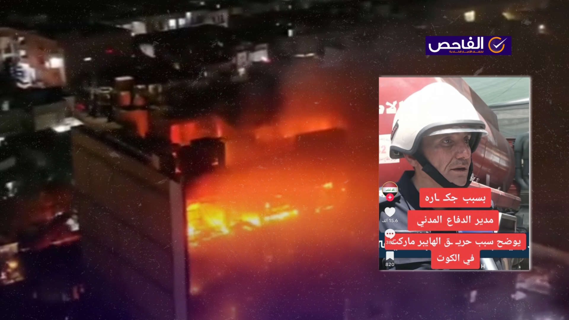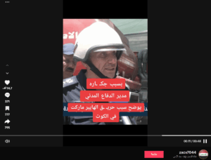 نشرت صفحات على مواقع التواصل الاجتماعي، وخصوصاً على منصة تيكتوك، مقطع فيديو بالتزامن مع أصداء حريق هايبر ماركت الكوت الأليم، على أن مدير الدفاع المدني أعلن أن سيجارة كانت سبباً في الحريق، وتم تضمينه بنص مفاده (دون تصرّف): “بسبب جكارة مدير الدفاع المدني يوضح سبب حريق الهايبر ماركت في الكوت”. وحصد الفيديو أكثر من 762 ألف مشاهدة، وأكثر من 17 ألف تفاعل في منشور واحد فقط على منصة تيكتوك.