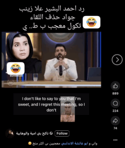 تداولت صفحات على مواقع التواصل الاجتماعي، وخصوصاً على منصة فيسبوك، مقطع فيديو للإعلامي الساخر أحمد البشير بمزاعم أنه يقر بندمه على استضافة المحامية زينب جواد، وأنه سيحذف حلقة اللقاء من منصة يوتيوب. وحصد الادعاء مئات التفاعلات في منشورات متعددة على منصة فيسبوك.