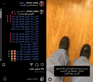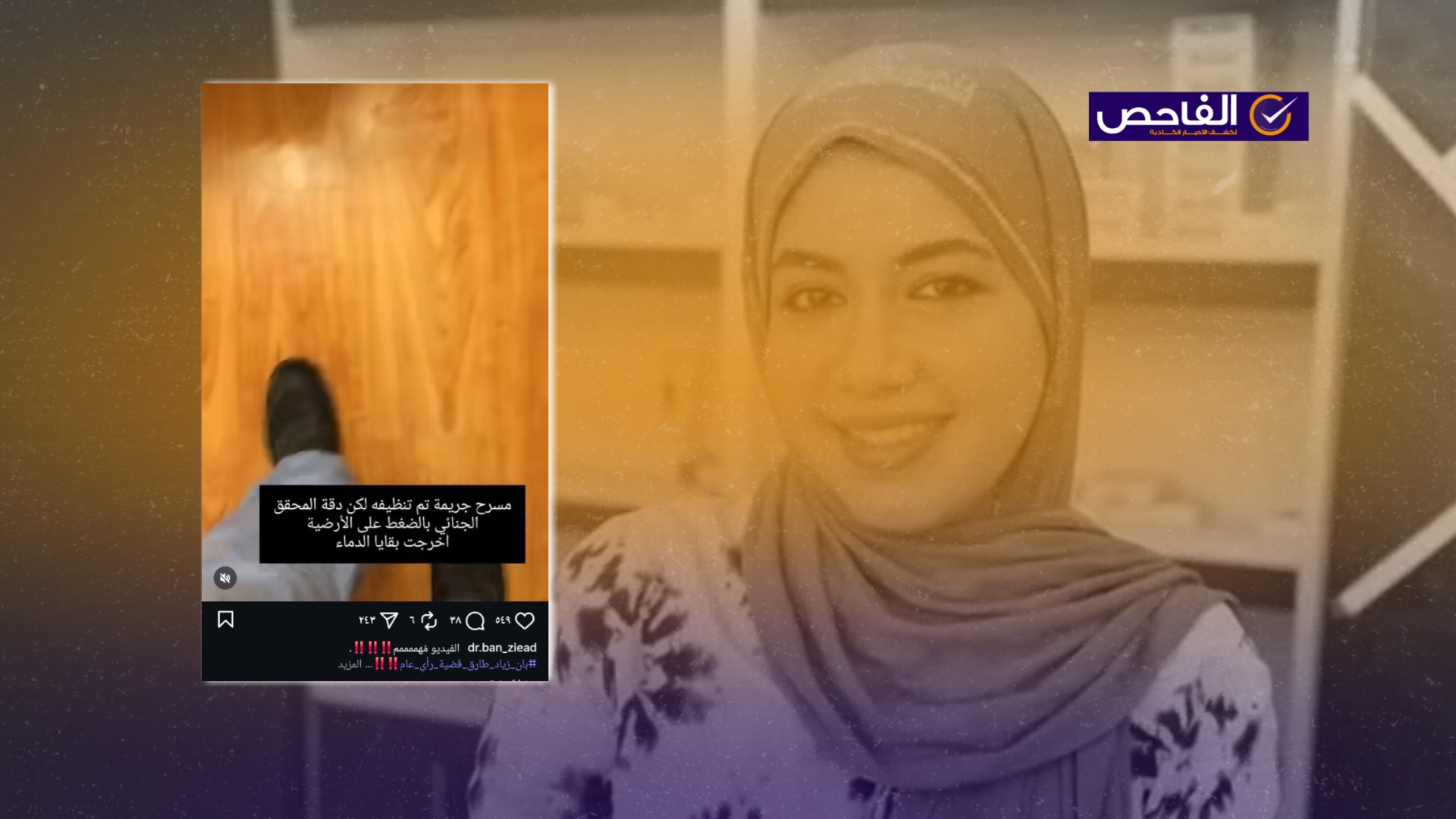 نشرت صفحات على مواقع التواصل الاجتماعي، وخصوصاً على منصة إنستغرام، مقطع فيديو على أنه من “مسرح جريمة” الضحية الطبيبة بان زياد طارق، وأن دماء تبرز من أرضية المكان. وأرفق الفيديو بالهاشتاغات: (#بان_زياد_طارق_قضية_رأي_عام – #نطالب_بحق_بان_زياد). وحصد الفيديو أكثر من 600 تفاعل في منشور واحد فقط على منصة إنستغرام.