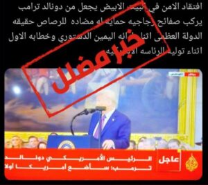 نَشرت صفحاتٌ على مواقع التواصل الاجتماعي، وخصوصاً على منصة إكس، صورة تظهر الرئيس الأميركي دونالد ترامب مع خبر يزعم (دون تصرّف): “افتقاد الامن في البيت الابيض يجعل من دونالد ترامب يركب صفائح زجاجيه حمايه له مضاده للرصاص حقيقه الدولة العظمى اثناء ادائه اليمين الدستوري وخطابه الاول اثناء توليه الرئاسة الامريكيه”. وحصد الادعاء مئات التفاعلات على منصة إكس.