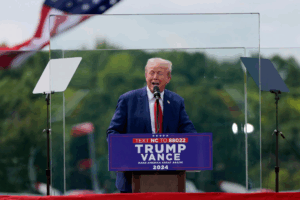 ووثقت وكلات اعلام أميركية، بوضوح ظهور ترامب خلف الزجاج المضاد للرصاص في تجمع خارجي بعد محاولة اغتيال في بنسلفانيا، وهو موقف أمني خاص لا علاقة له باليمين الرئاسي.