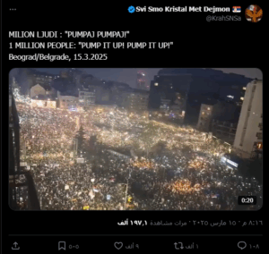 Beograd/Belgrade, 15.3.2025 pic.twitter.com/auevlY9cwu— Svi Smo Kristal Met Dejmon 🇷🇸 (@KrahSNSa) March 15, 2025