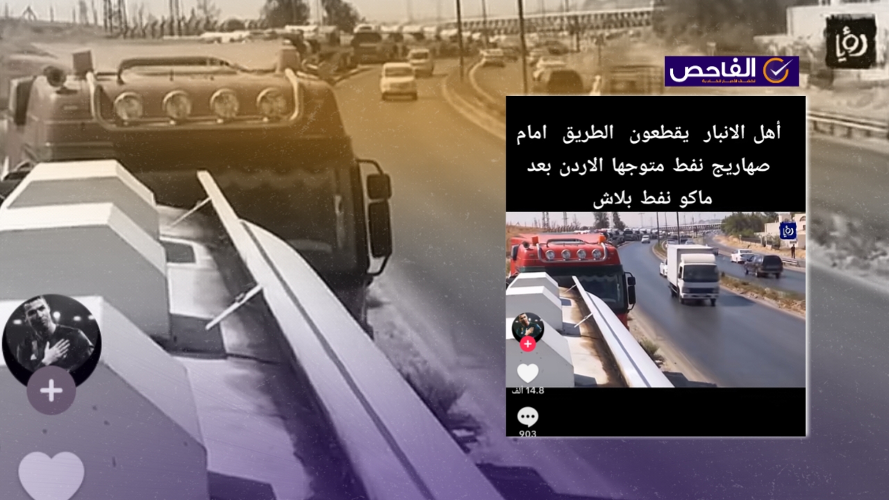 نشرت صفحات على مواقع التواصل الاجتماعي، وخصوصاً على منصة تيكتوك، مقطع فيديو يظهر رتلاً من الناقلات النفطية، بمزاعم (دون تصرّف): “أهل الانبار يقطعون الطريق امام صهاريج نفط متوجها الاردن بعد ماكونفط بلاش”. وحصد الادعاء آلاف التفاعلات على منصة تيكتوك.