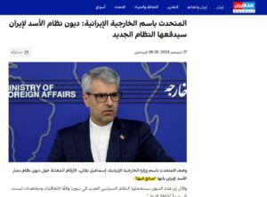 وفي تقريرين منفصلين نُشرا بتاريخ 17 ديسمبر 2024 على موقعي ‘إيران إنترناشيونال‘ و’العربية نت‘، صرّح بقائي أن الأرقام المعلنة حول ديون نظام بشار الأسد لإيران – ومن بينها مبلغ 50 مليار دولار – هي أرقام ‘مبالغ فيها .