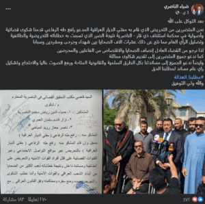 ودعا الناصري في بيانه، القضاء إلى “إنصاف الضحايا والاقتصاص من الفاعلين والمحرضين”، كما دعا جميع المتضررين إلى تقديم شكاوى مماثلة، وطالب بمساندته وتشكيل رأي عام مساند لمطالبه ومطالب المشتكين.