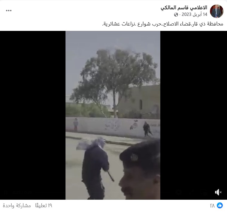 تداولت حسابات وصفحات إعلامية على مواقع التواصل الاجتماعي، وخصوصاً على منصة فيسبوك، مقطع فيديو بمزاعم أنه نزاع عشائري وسط شوارع محافظة ميسان، مع نص مرفق (دون تصرف): “‘دكة عشائرية’ تتحول إلى حرب شوارع في العمارة”. وقد حصد الادعاء الاف التفاعلات على منصات التواصل الاجتماعي.