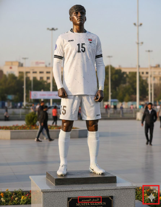 إضافة إلى ذلك، تحمل الصورة المتداولة ضمن الادعاء شعار موقع (Gemini)، الظاهر أسفل الصورة، وهو موقع مختص بتوليد الصور باستخدام تقنيات الذكاء الاصطناعي، كما يظهر تشوه في الاسم باللغة العربية، وهذه إشارة معتادة على أن المحتوى مولد. ما يؤكد عدم صحة الادعاء.