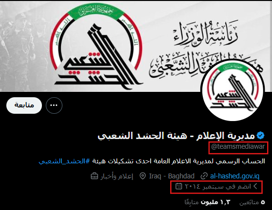 بالإضافة إلى أن أن معرف الحساب الناشر (hashedshaebe@)، فيختلف أيضاً عن معرف الحساب الرسمي (teamsmediawar@).
