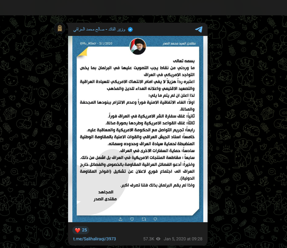 — مقتدى السيد محمد الصدر (@Mu_AlSadr) March 1, 2026