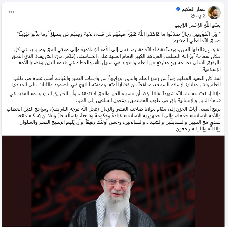 — Ammar Al-Hakim | عمار الحكيم (@Ammar_Alhakeem) March 1, 2026
