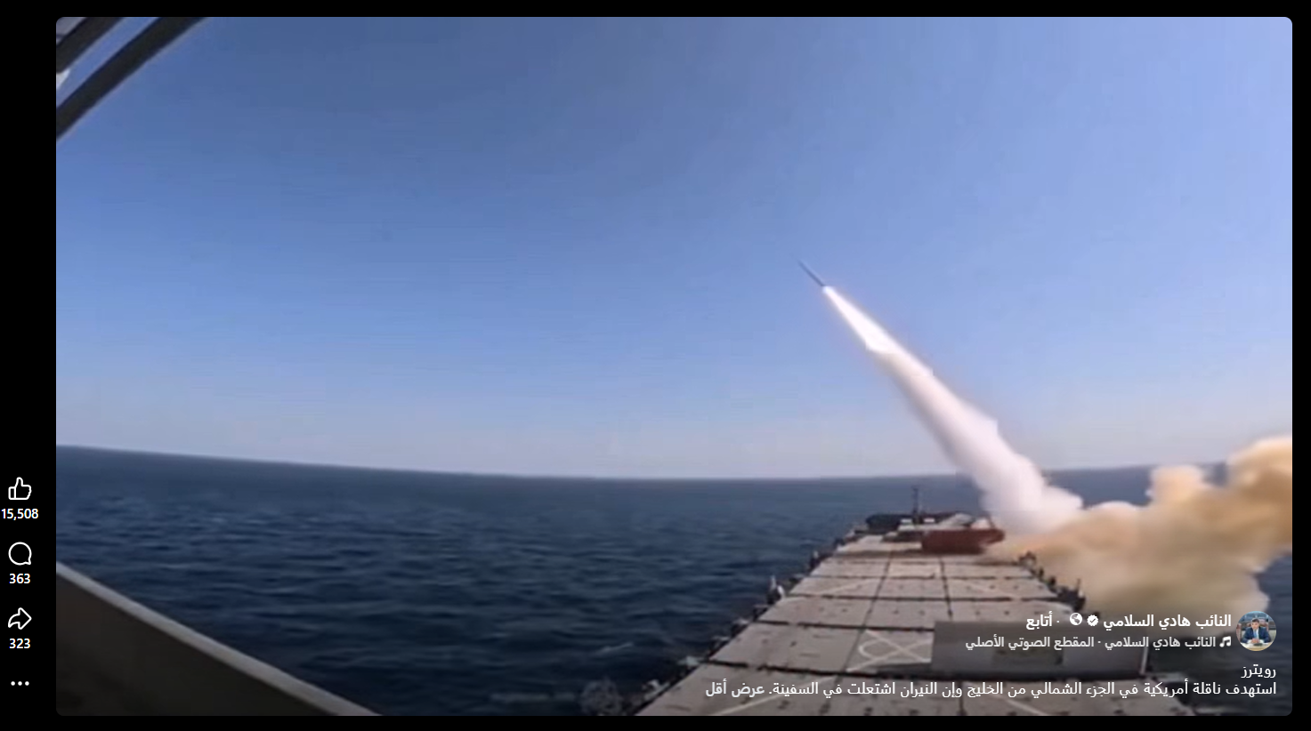 تداولت صفحات على مواقع التواصل الاجتماعي، وخصوصاً على منصّة فيسبوك، مقطع فيديو بمزاعم أنَّه يظهر قيام الحرس الثوري الإيراني باستهداف ناقلة نفط أميركية في الجزء الشمالي من الخليج العربي، ما أدى إلى اشتعال النيران فيها، ونسب الادعاء الخبر إلى وكالة “رويترز”. وحصد الادّعاء أكثر من 16 ألف تفاعل في منشور واحد فقط على فيسبوك.