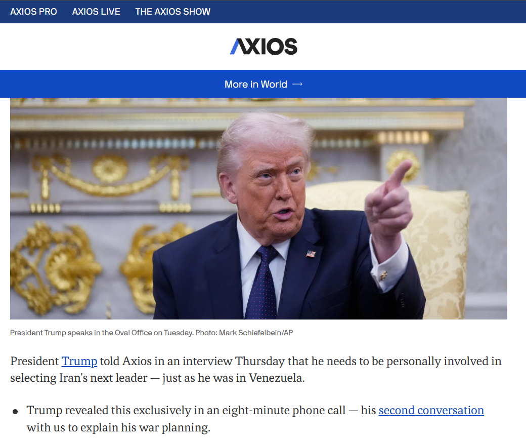 وفي تقرير لموقع “أكسيوس” يوم 5 آذار الجاري، قال الرئيس الأميركي إنَّه بحاجة إلى التدخّل شخصياً في اختيار القائد الجديد لإيران، تماماً كما فعل في فنزويلا. وكشف في تصريحاته قبل أيام، أنَّ مجتبى خامنئي هو المرشّح الأوفر حظاً لخلافة والده المرشد الأعلى السابق علي خامنئي، ولكنه أوضح في الوقت نفسه أنّه يعتبر هذه النتيجة “غير مقبولة”.