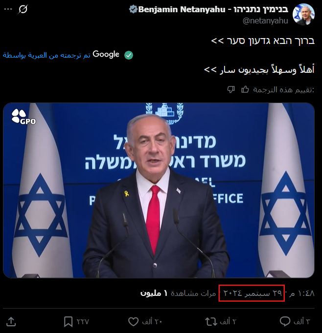 — Benjamin Netanyahu – בנימין נתניהו (@netanyahu) September 29, 2024