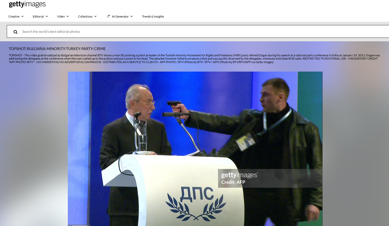 كما عثرنا على عديد من الصور التي توثّق الحادثة، منشورة على موقع الصور “getty images”، ومنها التي وثّقت القبض على منفّذ محاولة الاغتيال.