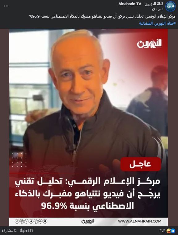 النتيجة النهائية لتحقيق الفاحص: الفيديو الذي نشره بنيامين نتنياهو حقيقي وليس قديماً!