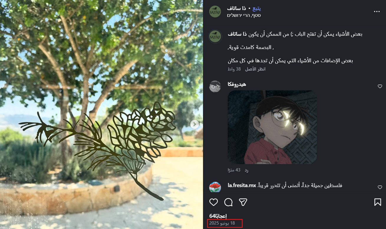 وبالتعمّق في البحث في حساب المقهى على إنستغرام، تبيّن أنَّه أعلن بأول منشور له عن قرب افتتاح المقهى يوم 18 حزيران 2025، ولم ينشط قبل ذلك الحين مطلقاً، وأشار من خلاله إلى جاهزية العلامة التجارية للمقهى، ووعد متابعيه بقرب موعد الافتتاح الرسمي، ما يدحض كلّياً المزاعم التي تحدّثت عن أنَّ زيارة نتنياهو تعود إلى عام 2024.